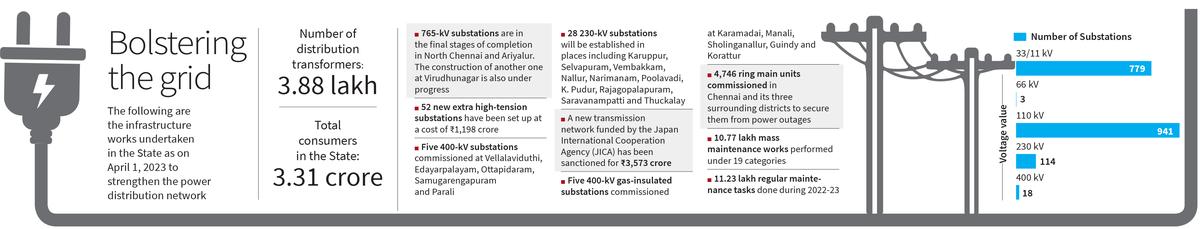 Among the vital initiatives carried out by Tangedco over the last monetary 12 months had been the commissioning of 400-KV substations at Vellalaviduthi, Edayarpalayam, Ottapidaram, Samugarengapuram and Parali and 230-KV substations at 28 locations. To strengthen the transmission community, Tangedco commissioned 52 further high-tension substations at a price of ₹1,198 crore. Nonetheless, there have been complaints of energy cuts and voltage fluctuations in inside components.