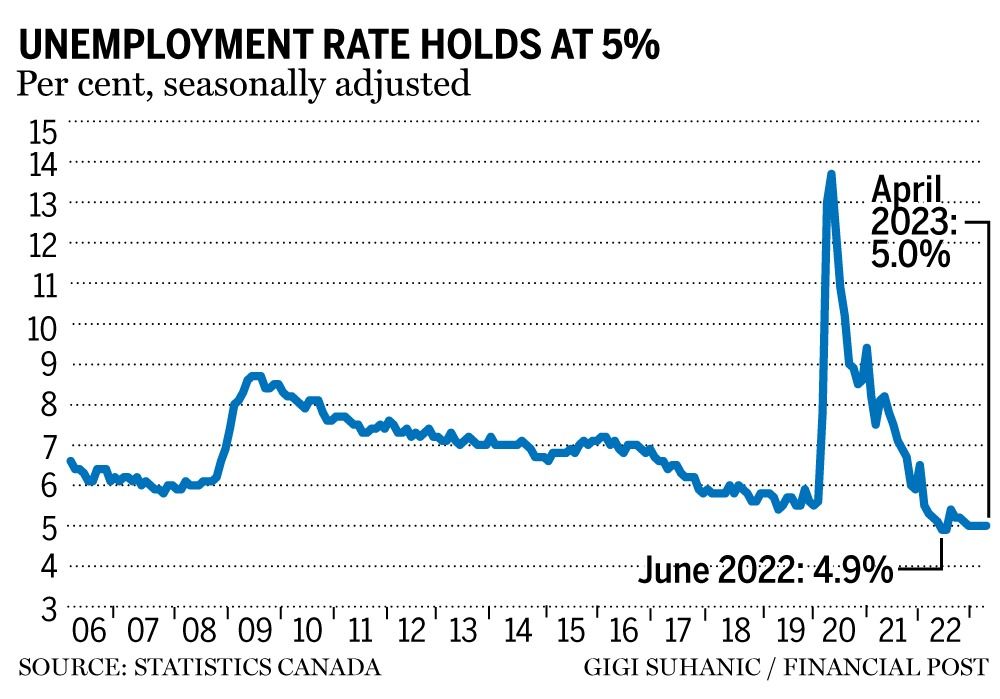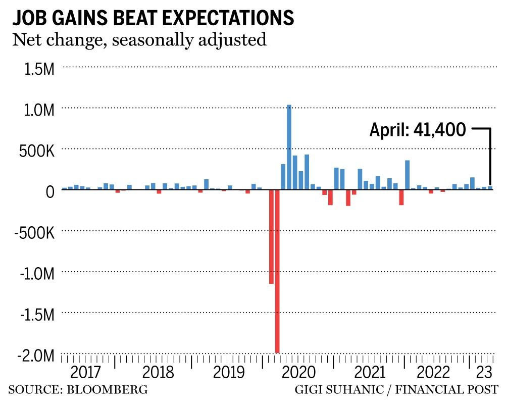 Canada’s job market hit it out of the park once more in April, gaining 41,000 jobs, greater than double expectations. The unemployed charge additionally stunned by sticking at 5 per cent, close to an all-time low.